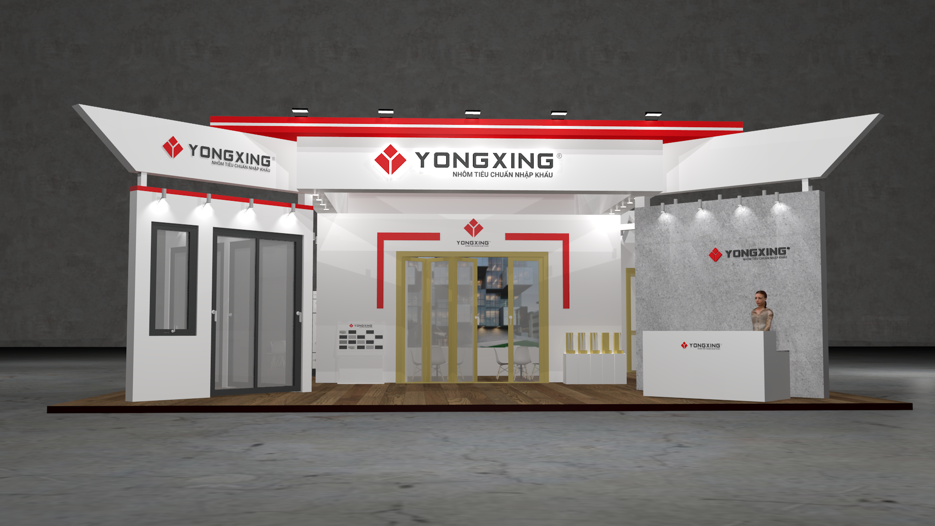 Năm nay gian hàng Nhôm Vĩnh Hưng tiếp tục là một trong những gian hàng lớn, quy mô nhất triển lãm với diện tích lên đến 252m2, trưng bày rất nhiều mẫu cửa, phụ kiện chất lượng cao và đa dạng phân khúc.