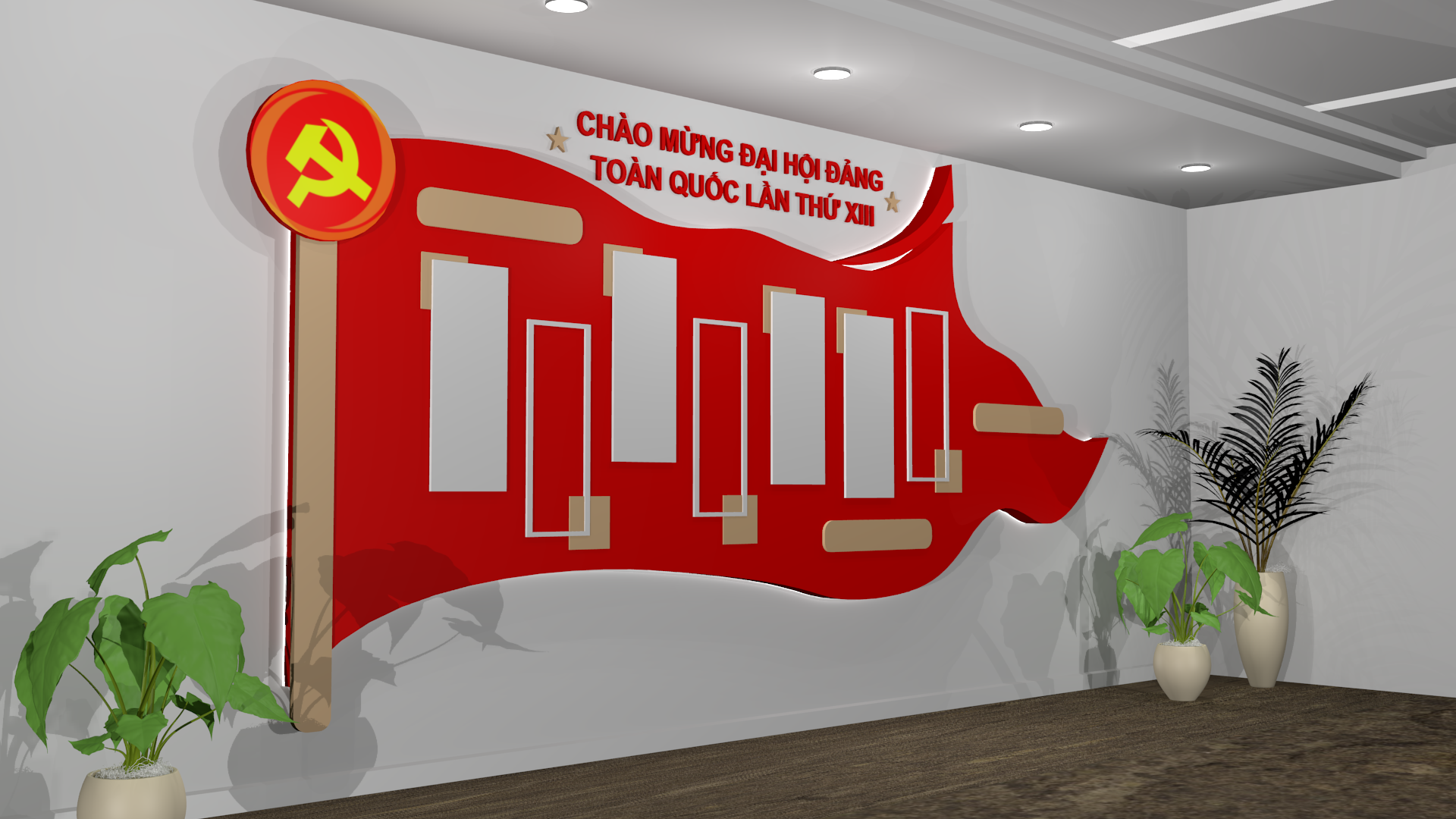 Thiết kế thi công vách phòng truyền thống đảng bộ