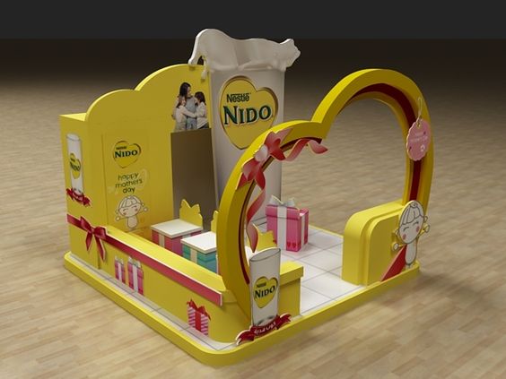 - Gian hàng thiết kế riêng: sử dụng vách gỗ MDF. Loại gian hàng này có thể tạo hình, uốn vách hay treo tủ, kệ, biển bảng nên có thể tùy ý sáng tạo thiết kế. Loại gian hàng này sẽ tận dụng được tối đa mục đích phát triển thương hiệu, bán hàng của khách hàng. Công việc thiết kế đối với gian hàng sử dụng vách MDF cũng khó hơn và thi công cũng phức tạp hơn nên các bạn cần thuê đơn vị thiết kế thi công gian hàng triển lãm hội chợ chuyên nghiệp để có được một gian hàng đúng mong muốn. Arta Việt Nam xin giới thiệu cho các bạn một số mẫu thiết kế gian hàng cỡ nhỏ 9m2 để các bạn có thể lựa chọn mẫu ưng ý và tùy biến để tiết kiệm thời gian