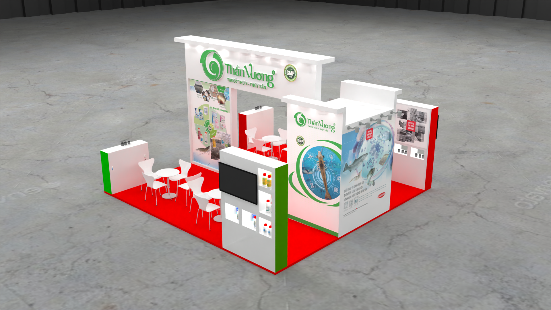 Như thường lệ, tại triển lãm Vietfish 2023, Arta Việt Nam được lựa chọn là đơn vị thiết kế thi công cho công ty Thần Vương, mời các bạn tham khảo thiết kế gian hàng triển lãm Vietfish của công ty Thần Vương: